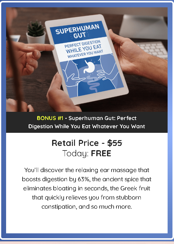 Get the free e-books “Superhuman Gut: Perfect Digestion While You Eat Whatever You Want” & “The At-Home Body Lift Protocol Used By Top Cosmetic Surgeons”