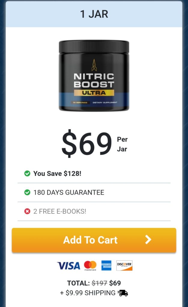 In this scenario, Nitric Boost Ultra stands out as a potential solution for men’s health and improved blood circulation. Using a blend of advanced ingredients and supported by scientific studies, Nitric Boost Ultra takes a comprehensive approach to enhancing circulation, boosting energy levels, and improving intimate performance, helping you feel more confident and revitalized.